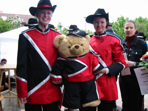 Aber auch die Näherinnen hatten eine kleine Überraschung für die Spielleute. Gabriele Müller überreichte Stabführerin Wiebke Dehn und Dirigentin Svenja Handt das neue Maskottchen "Mister Magic". Den Abschluss der Veranstaltung bildete die Tanzgruppe des Zuges, die magic steps unter der Leitung von Yvonne Wybrands-Lilje, mit ihrem Tanz zu "I Will Follow Him" aus Sister Act.