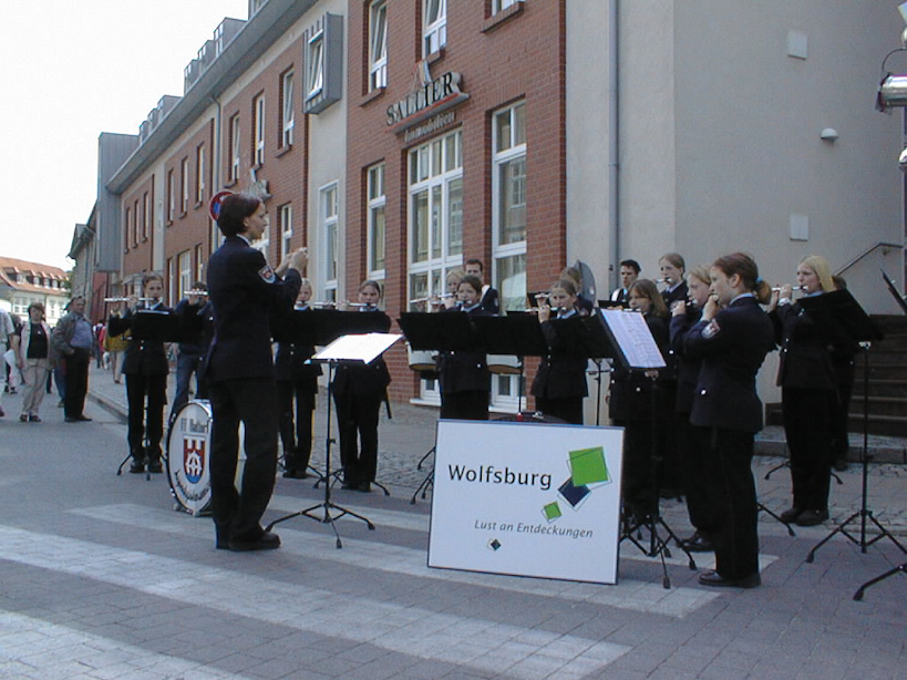 Der Zug spielte unter anderem auf der Bühne der Niedersächsischen Jugendfeuerwehr und des Landesfeuerwehrverbandes. Dessen Geschäftsführer Hans Rösner war ebenfalls von der etwas anderen Spielmannszugmusik der Hattorfer angetan. Auch vor dem Stand des Vereins City-Marketing-Tourismus aus Wolfsburg präsentierte sich der Zug.